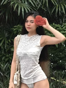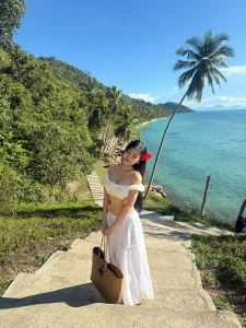 ได้ชมกัน เพราะเธอยังชอบแชร์ไลฟ์สไตล์ในชีวิตประจำวันให้ผู้ติดตามได้เห็นอีกด้วย ทำให้ รู้สึกเหมือนได้ติดตามชีวิตของเธอไปพร้อมๆ กัน ล่าสุดเจ้าตัวก็เพิ่งไปเที่ยวทะเลและไม่พลาดที่จะเก็บภาพบรรยากาศสวยๆ มาฝากแฟนคลับ แน่นอนว่าทั้งวิวทะเลและตัวเธอก็ดูเข้ากันสุด โดยลุคที่เธอใส่ในทริปนี้เป็นเสื้อสายเดี่ยวแมตช์กับกางเกงยีนขาสั้นแบบสบาย แต่พออยู่บนตัวเธอแล้วกลับดูมีเสน่ห์ขึ้นมาแบบทันที